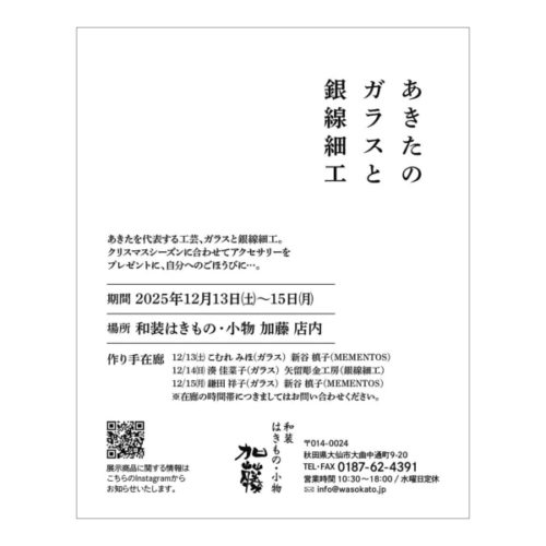 大仙市大曲にある「和装はきもの・小物 加藤」様の展示案内ハガキの写真を撮影させていただきました。